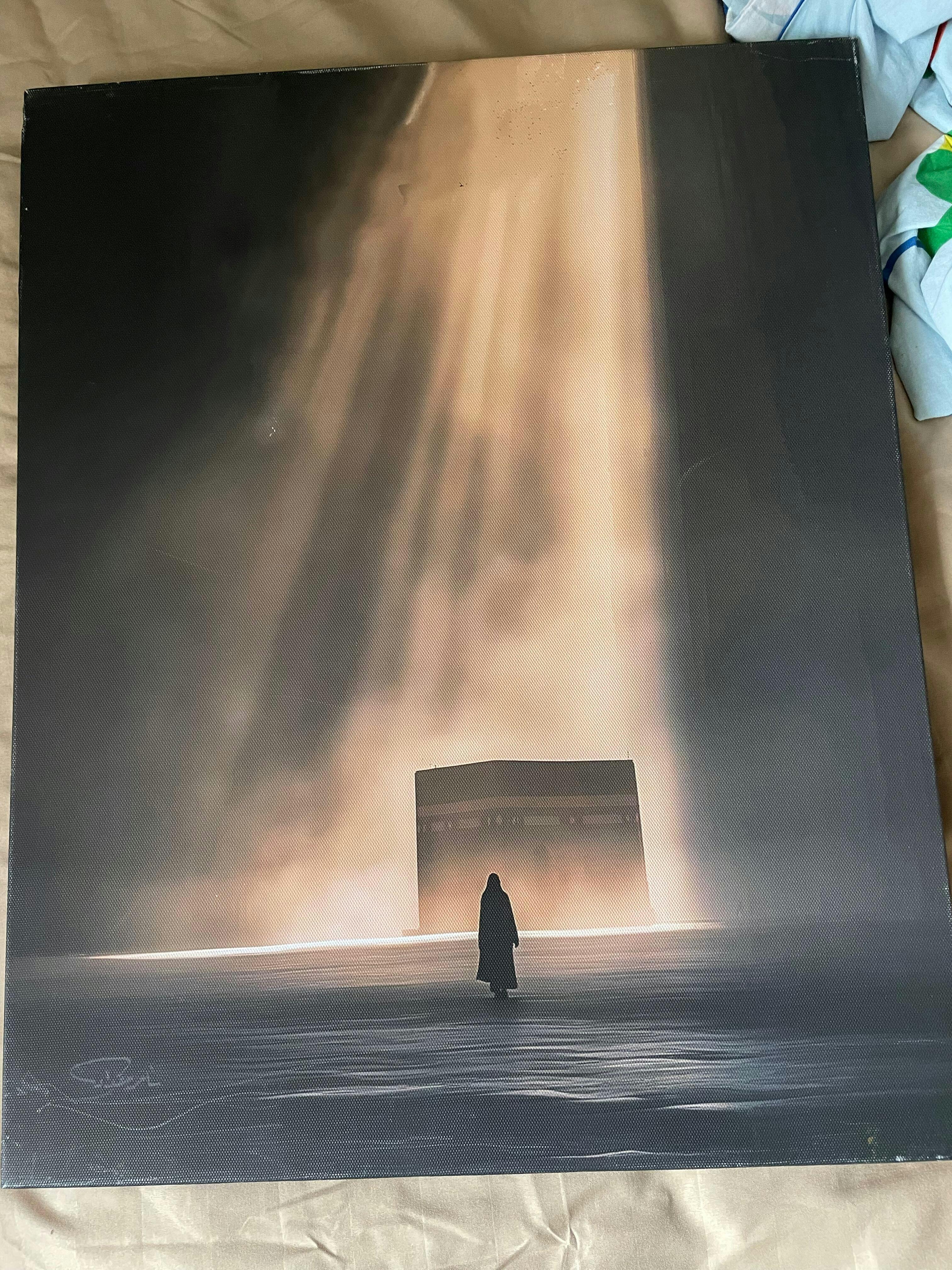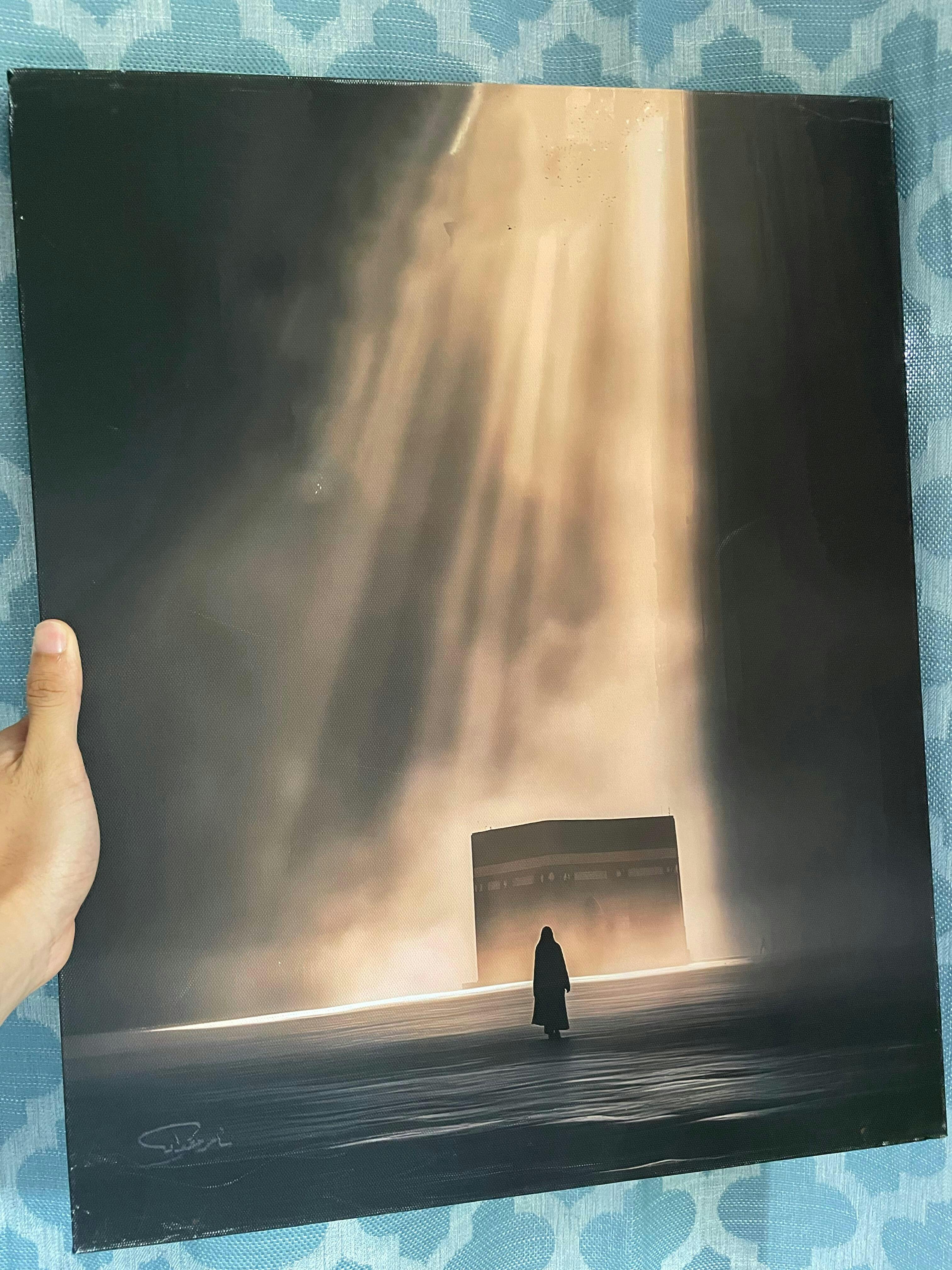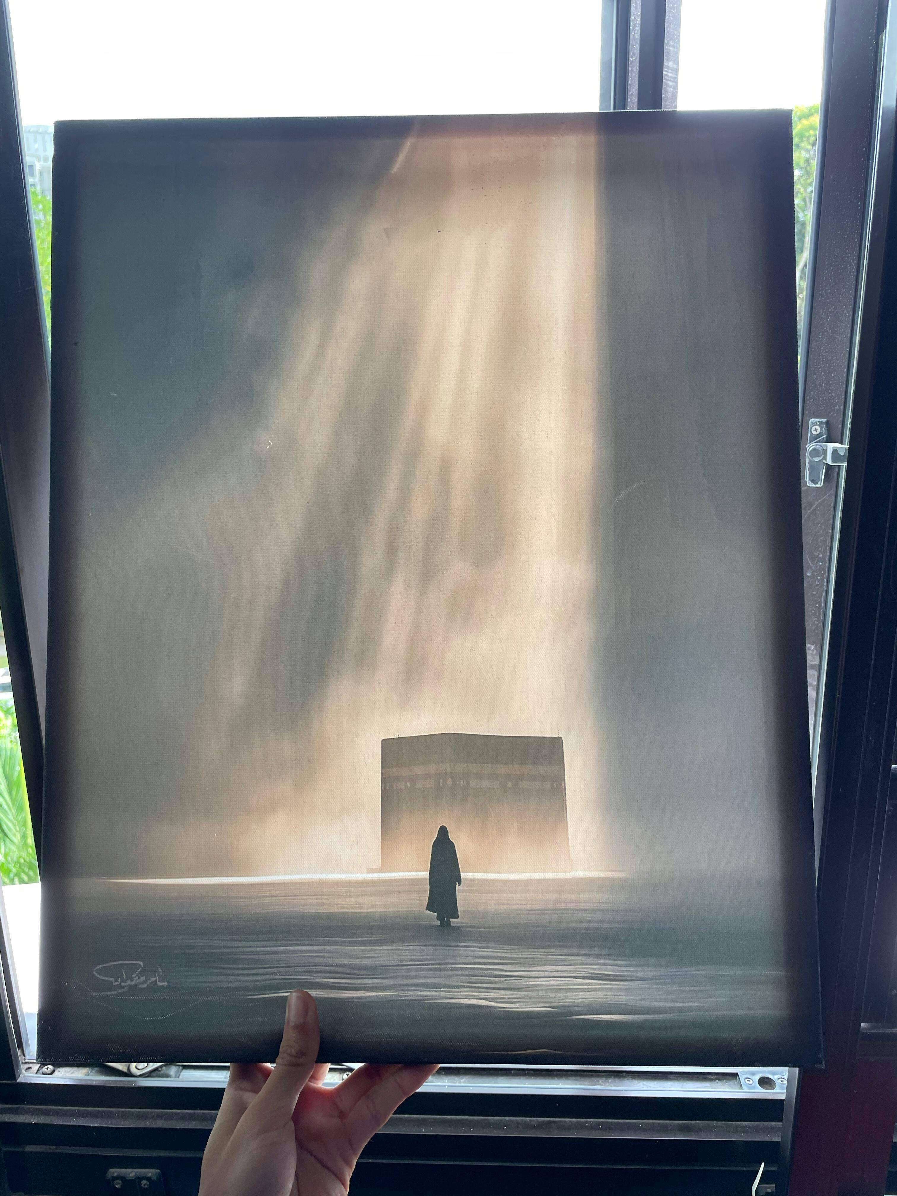 Beautiful wall frame featuring the Kaabah with a gentle, motherly figure, symbolising warmth, care, and spiritual guidance in the home.